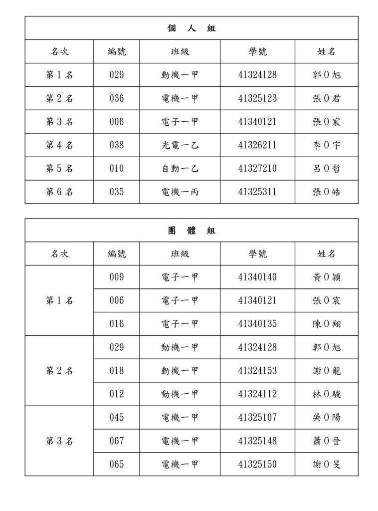 第二十屆微積分競賽得獎名單與領獎須知 2025-05-27 AdminAdmin ★請將附件中的領據列印填寫並於114/6/20前繳交至「通識教育中心辦公室」,以利後續進行獎金請領作業。★獎狀請撥空到「通識教育中心」領取,地點:三期教學大樓3樓。★團體組僅需提供其中一名帳戶資料 承辦人:石小姐電話:631-5837 114年微積分競賽獎金領據下載